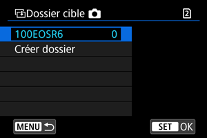 - Pour créer un nouveau dossier, sélectionnez [Créer dossier].