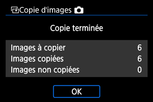 - Les résultats s'affichent une fois la copie terminée. Sélectionnez [OK] pour revenir à l'écran de l'étape 2.