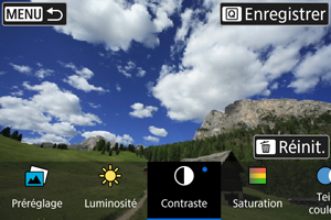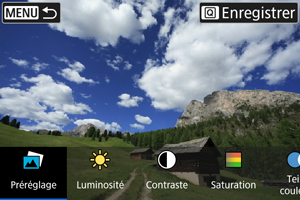 - Vous pouvez sélectionner des effets comme [Luminosité] ou [Contraste] en appuyant sur