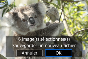 Vous pouvez convertir les images HEIF capturées lors de la prise de vue HDR et les sauvegarder en tant qu'images JPEG.