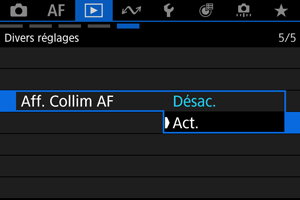 Sélectionnez [: Aff. Collim AF] ().