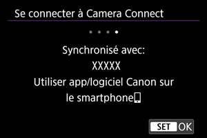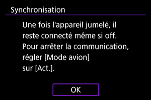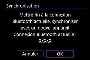 - Un message s'affiche si l'appareil photo est déjà synchronisé avec un autre appareil.