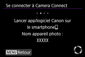 , tapotez une fonction Camera Connect pour vous connecter via Wi-Fi, puis redémarrez depuis l'étape 1.