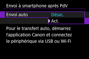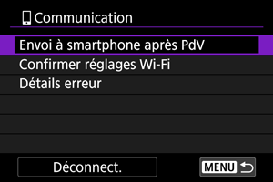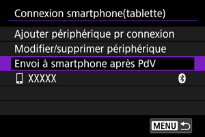 - Envoi d'images à un smartphone à partir de l'appareil photo