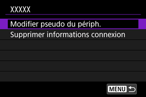 Vous pouvez modifier le pseudo des périphériques auxquels l'appareil photo se connecte.