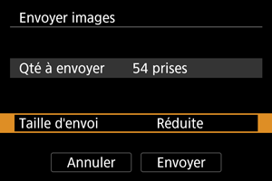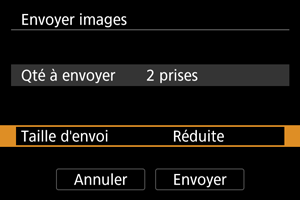 - Lors de l'envoi de plusieurs images, vous pouvez également modifier [Taille d'envoi] au besoin sur l'écran de confirmation avant l'envoi.