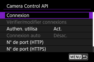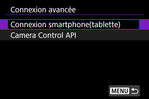 Avant d'utiliser une application ou un autre produit appliquant Camera Control API (CCAPI)*, préparez l'appareil photo pour le contrôle CCAPI en le connectant au smartphone, à la tablette ou à l'ordinateur que vous prévoyez d'utiliser.