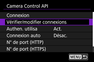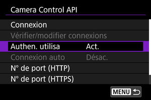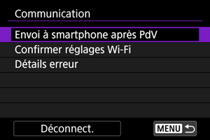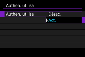 Sélectionnez [Act.] pour établir une connexion automatique au prochain démarrage de l'appareil photo après l'avoir éteint.