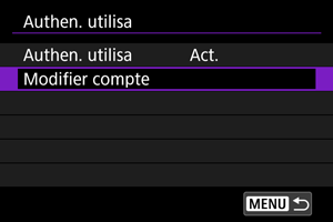 - Si vous avez sélectionné [Act.], saisissez le [Nom d'utilisateur] et le [Mot de passe] dans [Modifier compte].
