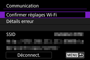 Après des erreurs de connexion Wi-Fi, vous pouvez vérifier les détails des erreurs ().