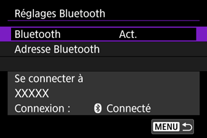 Vous pouvez vérifier l'adresse Bluetooth de l'appareil photo.