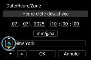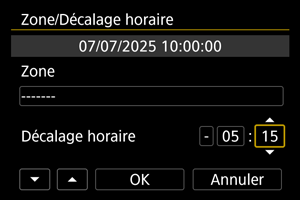 - Après avoir modifié [Zone/Décalage horaire], vérifiez que la bonne date/heure a été réglée.