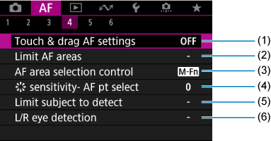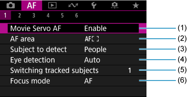 תפריטי לשוניות: AF (הקלטת וידאו)