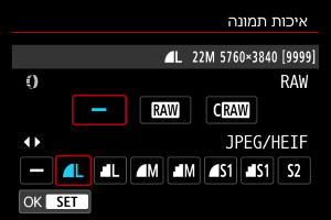 מוגדרים כאשר RAW ו-JPEG/HEIF מוגדרים במצב [