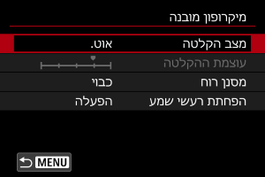 - פריטי ההגדרות הזמינים משתנים בהתאם למיקרופון שנמצא בשימוש.