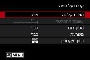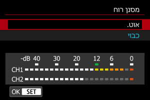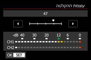 ניתן להתאים את רמת הקלטת השמע לפי הצורך. כוונן את הרמה ב-[עוצמת ההקלטה].