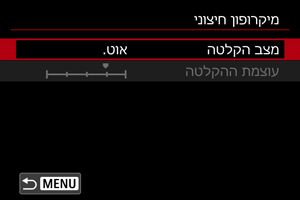 להגדרת הגדרות עבור מיקרופונים חיצוניים המשתמשים בחיבור מיקרופון חיצוני.