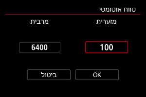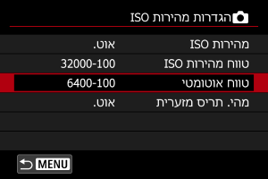 עבור ISO [AUTO] ניתן להגדיר את מגבלת מהירות ה-ISO המקסימלית.