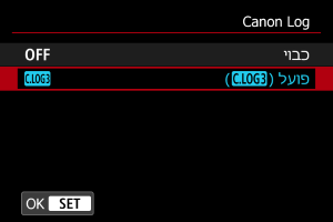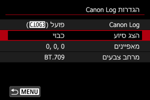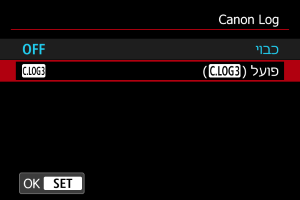 : הגדרות Canon Log] מוגדר במצב [פועל (