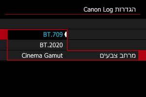 בחרו את [BT.709], [BT.2020] או [Cinema Gamut] כמרחב הצבעים בעת שמירה לכרטיסים.