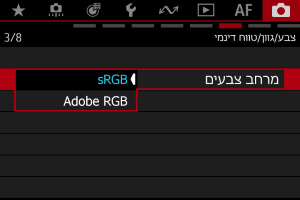 באזור הבסיסי, [sRGB] מוגדר באופן אוטומטי.