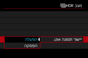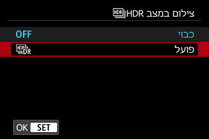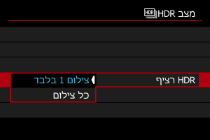 - בבחירה ב-[כל צילום], מצב צילום HDR ממשיך עד שתגדירו בשלב 2 את [כבוי].