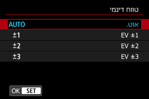 - בחירה ב-[אוט.] תגדיר את הטווח הדינמי באופן אוטומטי, בהתאם לטווח הגוונים הכולל של התמונה.