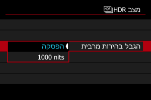 - במצב [הפסקה], הבהירות המרבית אינה מוגבלת. מומלץ כאשר ברצונכם לסקור את התמונות שצולמו על צג התומך בתצוגה בבהירות של מעל 1000 ניטים (nits).