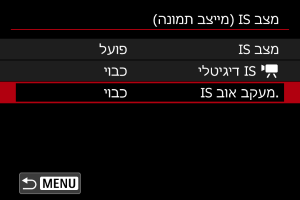 ) כדי להשבית את ה-Image Stabilizer (מייצב תמונה) באמצעות IS דיגיטלי לווידאו.