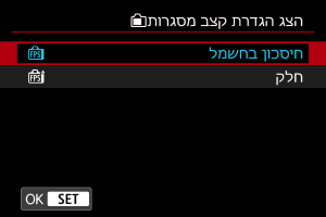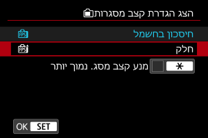 ניתן להגדיר את קצב הפריימים לתצוגה עבור מסך הצילום בצילום תמונות סטילס. בחר אם לחסוך בסוללה או להשתמש בקצב פריימים גבוה לתצוגה.