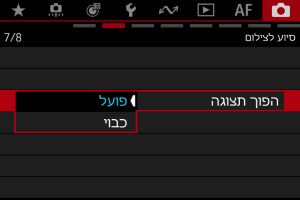 ניתן להציג תמונת מראה בעת צילום כשהמסך מסובב לכיוון הנושא (לכיוון קדמת מצלמת הווידאו).