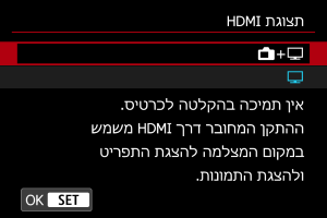 ]. תפריטי מצלמת הווידאו וצפייה בתמונות מוצגים רק על המסך המחובר באמצעות HDMI.