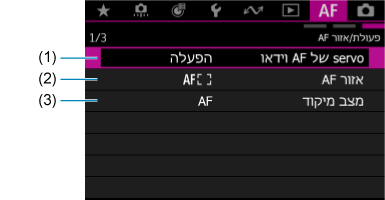 תפריטי לשוניות: AF (הקלטת וידאו)
