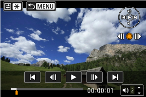 - הצפייה בסרט הווידאו מתחילה. הצליל מושמע דרך הרמקול (1).