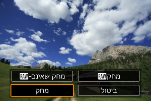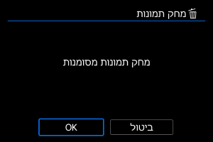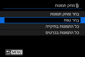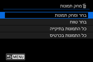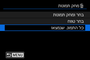 : מחק תמונות], כל התמונות שבתיקייה או בכרטיס יימחקו.
