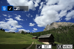 - בבחירה ב-[כל התמונות בתיקייה] או [כל התמונות בכרטיס] בתפריט [
