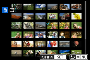 במהלך צפייה בתמונות בתצוגת האינדקס, ניתן לבחור את התמונות הראשונות והאחרונות בטווח כדי למחוק את כל התמונות שבין שתי הנקודות בבת אחת.