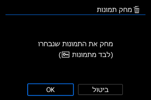 - לא ניתן לשחזר תמונה לאחר המחיקה. ודא שאינך זקוק יותר לתמונה לפני שתמחק אותה. כדי למנוע מחיקת תמונות חשובות בטעות, הגן עליהן.