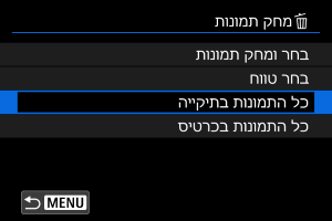 מחיקת כל התמונות בתיקייה או בכרטיס