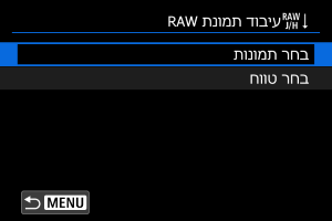 תמונות JPEG או HEIF ביחס התצוגה שהוגדר נוצרות כאשר אתם מעבדים תמונות RAW שצולמו כאשר [: