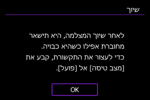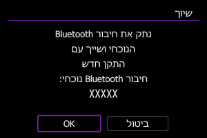 - תוצג הודעה אם המצלמה כבר מותאמת למכשיר אחר. בחר [OK] כדי לסיים את חיבור ה-Bluetooth הנוכחי.