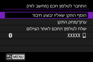 ניתן לעשות את הפעולות הבאות לאחר שיוך המצלמה והטלפון החכם באמצעות Bluetooth.
