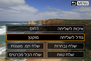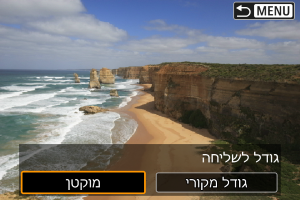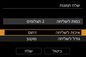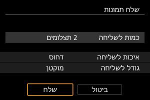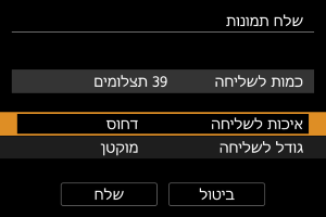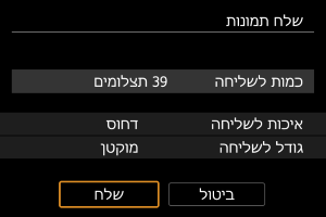 - בעת שליחת תמונות מרובות, תוכל גם לשנות את ה-[גודל לשליחה] לפי הצורך במסך האישור לפני השליחה.