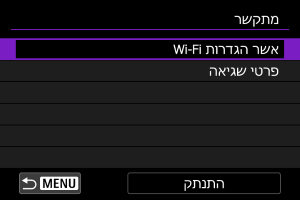 - הקישו על פונקציה של Camera Connect כדי להפעיל חיבור Wi-Fi.