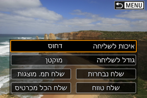 ניתן לבחור את איכות התמונה של סרטי הווידאו לשליחה.