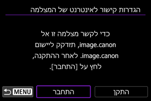 - לקבלת הוראות לגבי אופן השימוש בשירותי image.canon ופרטים על מדינות ואזורים שבהם השירות זמין, בקרו באתר image.canon (https://image.canon/).