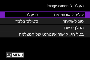 - [כאשר מצלמה מופעלת]: השליחה האוטומטית מתחילה כאשר מצלמת הווידאו מופעלת.
