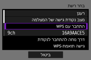 בחרו ב-[התחבר עם WPS] במסך [בחר רשת].