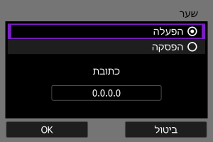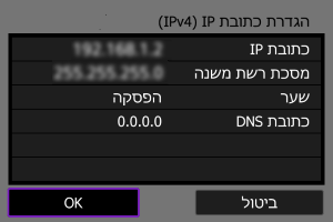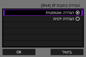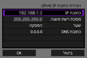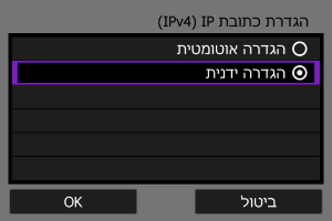 הגדירו את הגדרות כתובת ה-IP באופן ידני. שימו לב שהפריטים המוצגים משתנים בהתאם לפונקציית התקשורת.