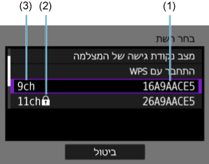 - (2) סמל אבטחה (עבור נקודות גישה מוצפנות בלבד)